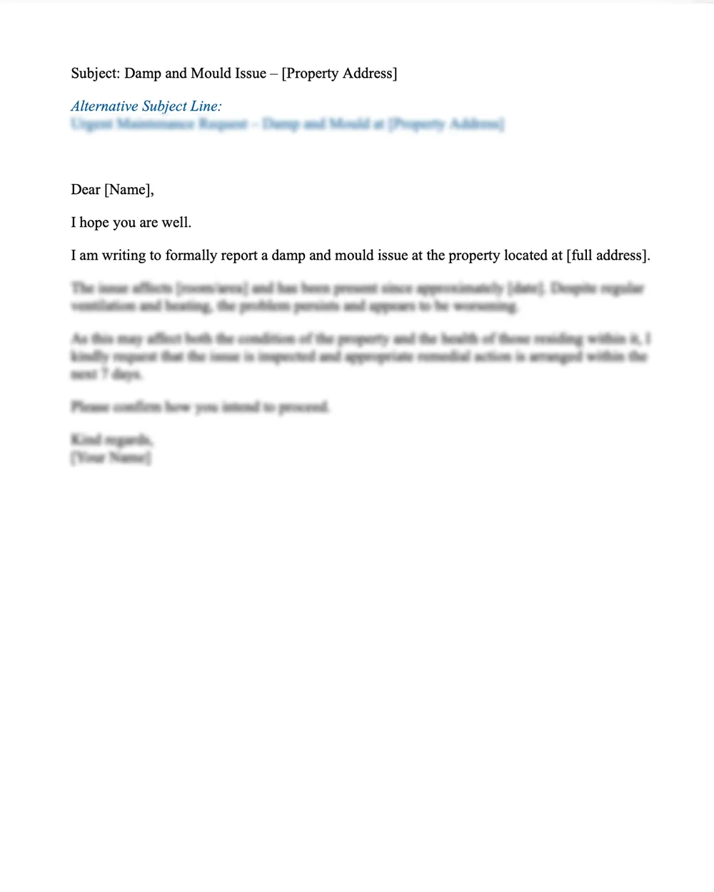 Whether you are dealing with persistent condensation, visible mould growth, peeling paint or structural damp, this template provides clear wording you can adapt to your situation.
